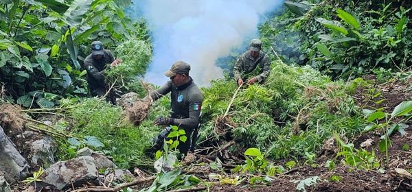 En hechos distintos, los oficiales realizaban recorridos en la localidad La Mirra de Texcatepec, cuando localizaron 600 plantas de hierba verde similar a la marihuana.