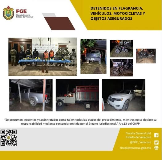 Amatlán de los Reyes, Ver., a 11 de julio del 2025.- La Fiscalía General del Estado informa que fiscales, peritos y policías ministeriales adscritos a la Fiscalía Regional Córdoba, en coordinación con la Secretaría de la Defensa Nacional, la Secretaría de Marina, Guardia Nacional, y la Secretaría de Seguridad Pública llevaron a cabo un cateo autorizado por un juez, en la localidad El Cacahuatal, de este municipio. En dicho operativo se logró la detención en flagrancia de Servando “N”, Elizabeth “N” y una adolescente con identidad resguardada. Así mismo se…
