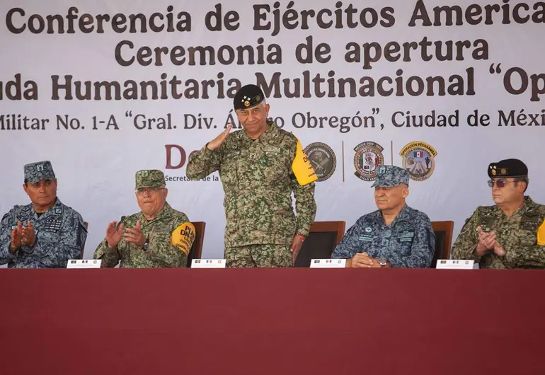El comandante del Ejército Mexicano, general Francisco Jesús Leana Ojeda, entregó este miércoles la presidencia de la Conferencia de Ejércitos Americanos a su homólogo de Paraguay, el general Manuel Rodríguez Sosa, en una ceremonia realizada en las instalaciones de la Primera Brigada de Infantería Independiente, en el Campo Militar número 1, General Álvaro Obregón. Luego de dos años al frente de este organismo que integra a los soldados del continente, creado en 1960, el general Leana Ojeda destacó la realización, en julio de este año, de un ejercicio multinacional de…