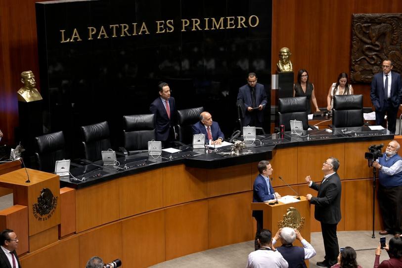 La instalación de la Comisión Permanente del Congreso de la Unión casi llegó hasta los golpes esta noche cuando senadores y diputados de Morena intentaron impedir que el senador del PAN, Ricardo Anaya, hiciera uso de la palabra. Anaya Cortés intentaba iniciar un debate sobre las acusaciones del Departamento de Justicia de Estados Unidos contra el gobernador de Sinaloa, Rubén Rocha Moya. El tema intentó ser censurado por diputados y senadores de Morena, encabezados por el diputado Gabriel Hernández, quien buscaba con empujones y gritos que Anaya fuera retirado del…