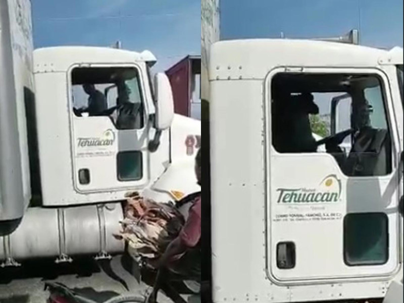 El percance, según testigos, se dio porque aparentemente el transportista no le cedió el paso al conductor del colectivo, lo que lo molestó y tras rebasar al camión con su unidad, se le cerró.
