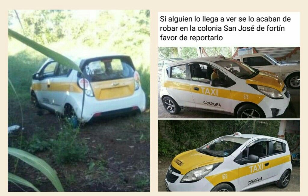 FORTÍN, VER.- La mañana de este lunes fue reportado el hallazgo de una unidad del servicio de taxi marcado con el número económico 676 de color amarillo con blanco, el cual se encontró sin llantas y desvalijado al parecer de su interior.