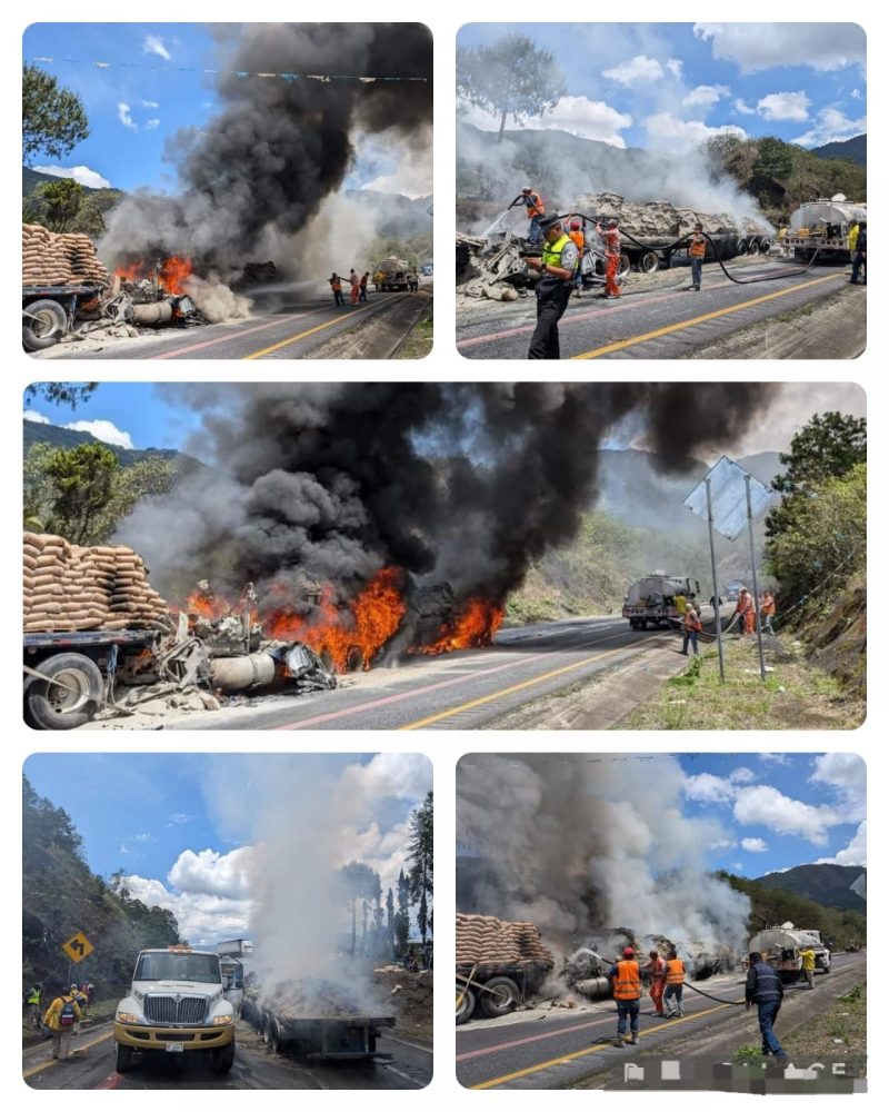 Afortunadamente no hay reporte de lesionados de gravedad, solo golpes en los conductores de las unidades de carga, pero lograron salir de sus respectivas unidades.