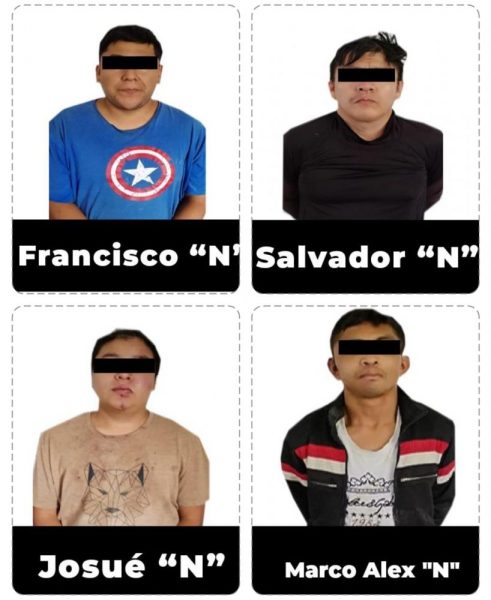 De inmediato, aprehendieron a Josué “N”, Francisco N”, Marco Alex “N” y Salvador “N” y les aseguraron dos armas de fuego cortas, un cargador, cartuchos útiles y 10 bolsas de hierba verde con similitudes a la marihuana.