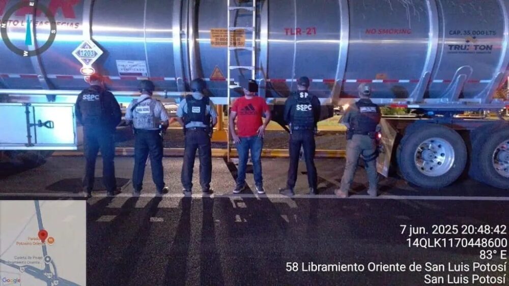 De acuerdo con el reporte oficial, los efectivos realizaban labores de patrullaje cuando detectaron un tractocamión acoplado a dos semirremolques tipo tanque. Al revisar la unidad, constataron que tanto el vehículo como los remolques no contaban con reporte de robo. Sin embargo, el combustible transportado —cuya procedencia no fue acreditada en el momento— motivó la detención de una persona.