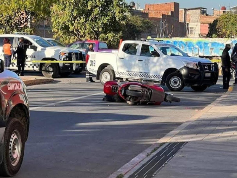 Abatida, la joven cayó con todo y la motocicleta frente a la estación de Bomberos de la ciudad de Cortazar.