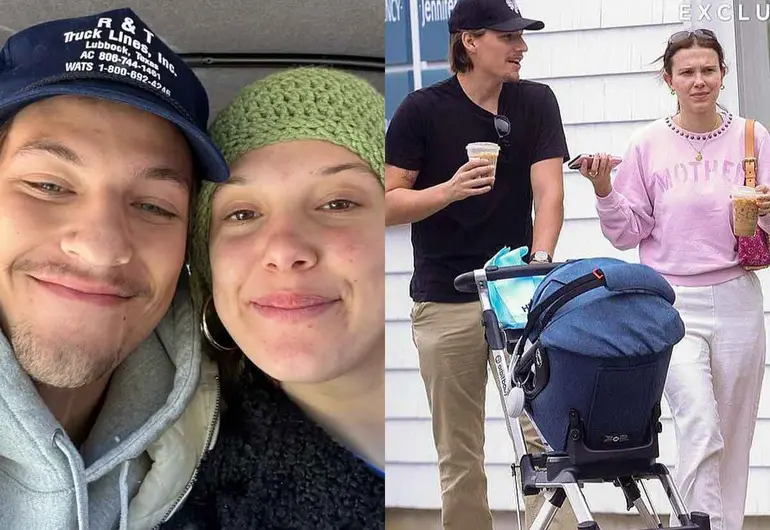 Nada de glamour hollywoodense esta vez, pues la pareja se mostró muy relajada, Millie en sudadera y Jake en atuendo cómodo mientras empujaban un cochecito de bebé que robó todas las miradas.