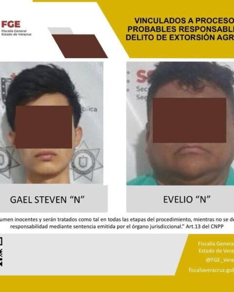 Coatzacoalcos, Ver., 25 de septiembre de 2025.-La Unidad Especializada en Combate al Secuestro y la ¢xtorsión obtuvo vinculación a proceso en contra de Evelio “N” y Gael Steven “N” como probables responsables del delito de ¢xtorsión agravada cometido en agravio de una víctima con identidad resguardada. Los hechos ocurrieron sobre el Boulevard Manuel Ávila Camacho, en la colonia Centro de Coatzacoalcos, donde elementos policiacos realizaban un recorrido preventivo y detectaron un vehículo estacionado de manera irregular, el cual obstruía la vialidad. Los ahora vinculados a proceso, al notar la presencia…