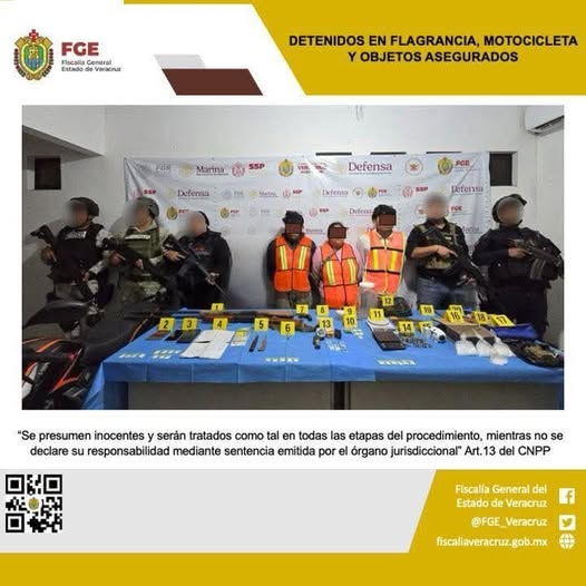 Maltrata, Ver., a 25 de septiembre del 2025.- La Fiscalía General del Estado informa que fiscales, peritos y policías ministeriales adscritos a la Fiscalía Regional Córdoba, en coordinación con la Secretaría de la Defensa Nacional, Guardia Nacional y la Secretaría de Seguridad Pública Estatal, llevaron a cabo un cateo autorizado por un juez en la colonia Centro, Sección Segunda, ubicada en este municipio. En dicho operativo se detuvo en flagrancia a María del Rosario “N”, Raúl “N”, Jesús “N” y un adolescente de identidad resguardada. Así mismo, se aseguraron armas…