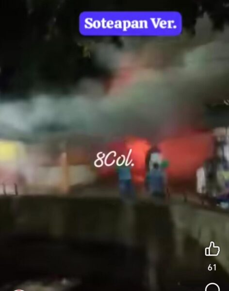 En pleno centro del municipio de Soteapan Veracruz se incendia y local comercial durante la madrugada.