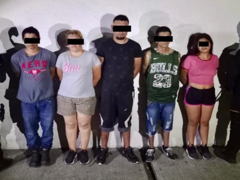 Los detenidos son: Sergio “N”, de 23 años de edad; Carlos “N” y Esteban “N”, de 26 años, así como Xiosmara “N”, de 18; Rosalinda “N”, de 41 y una adolescente de 14 años de nombre Linda “N”.
