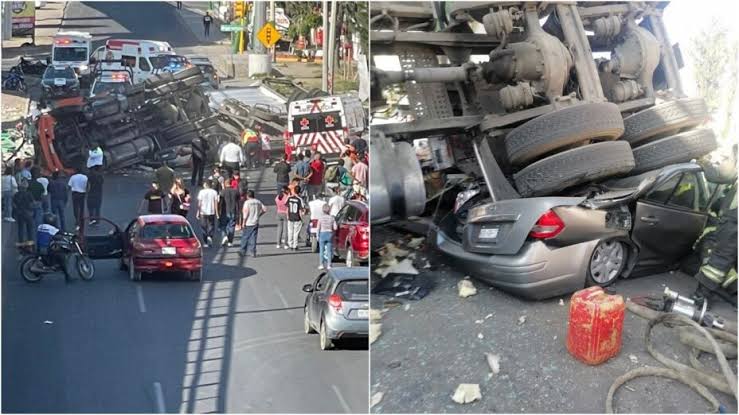 La tarde de este sábado 04 de noviembre un tráiler volcó y cayó desde un puete vehicular, aplastando al menos a tres automóviles; se reportan cuatro personas lesionadas.