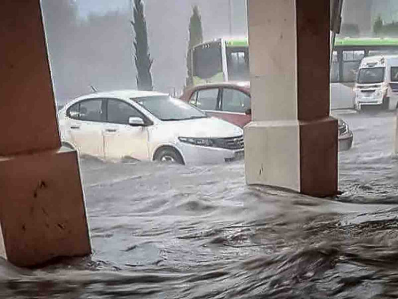 Otra área afectada en Pachuca fue la glorieta de la Zona Plateada, donde se registró anegamiento y concentración de material de arrastre.