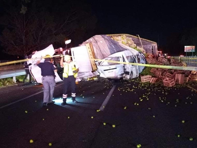 Una persona sin vida fue lo que dejó un accidente de tránsito en el que el conductor de un camión de carga volcó de costado, cayendo sobre una camioneta particular, informaron los servicios de emergencia del estado de Querétaro.