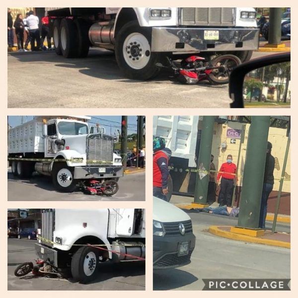 Datos que se dieron a conocer durante la tarde de este martes es que al parecer un camión que circulaba de la avenida Orizaba, para incorporarse a la avenida Cri Crí, de esta ciudad, chocó y arrollo contra un motociclista el cual terminó bajo la pesada unidad.