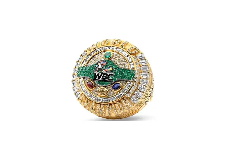 El anillo, bautizado como parte de la serie WBC Crown, fue concebido por Rasheen Farlow y fabricado por los joyeres de Jason of Beverly Hills. Oro amarillo, 10 quilates en piedras preciosas, 8.5 de ellos en diamantes blancos.En la parte superior brilla el logo del CMB rodeado por la inscripción World Champion con incrustaciones verdes. Un mecanismo giratorio revela una miniatura del Allegiant Stadium con un ring en el centro y los nombres de Canelo y Crawford grabados.