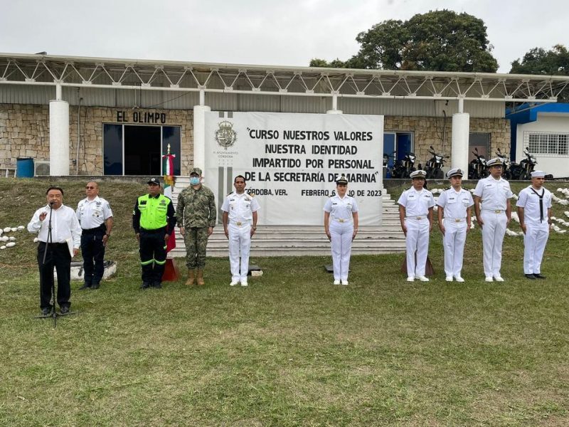 Córdoba, Ver., (06 de febrero del 2023).- Este lunes, el Presidente Municipal, Juan Martínez Flores, inauguró el «Curso Nuestros Valores, Nuestra Identidad 2.0», impartido por elementos de la Secretaría de Marina (Semar) a elementos de las diversas corporaciones.