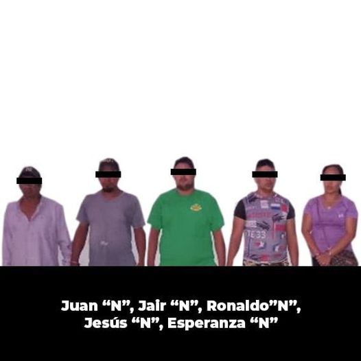 Con prontitud los elementos operativos se acercaron para verificar la situación y realizarle una revisión a cada uno. Acto seguido, les aseguraron a Juan “N”, Jair “N”, Ronaldo “N”, Jesús “N” y Esperanza “N”, 16 dosis de una sustancia granulada parecida al cristal y cuatro costales con carne en canal de un semoviente.