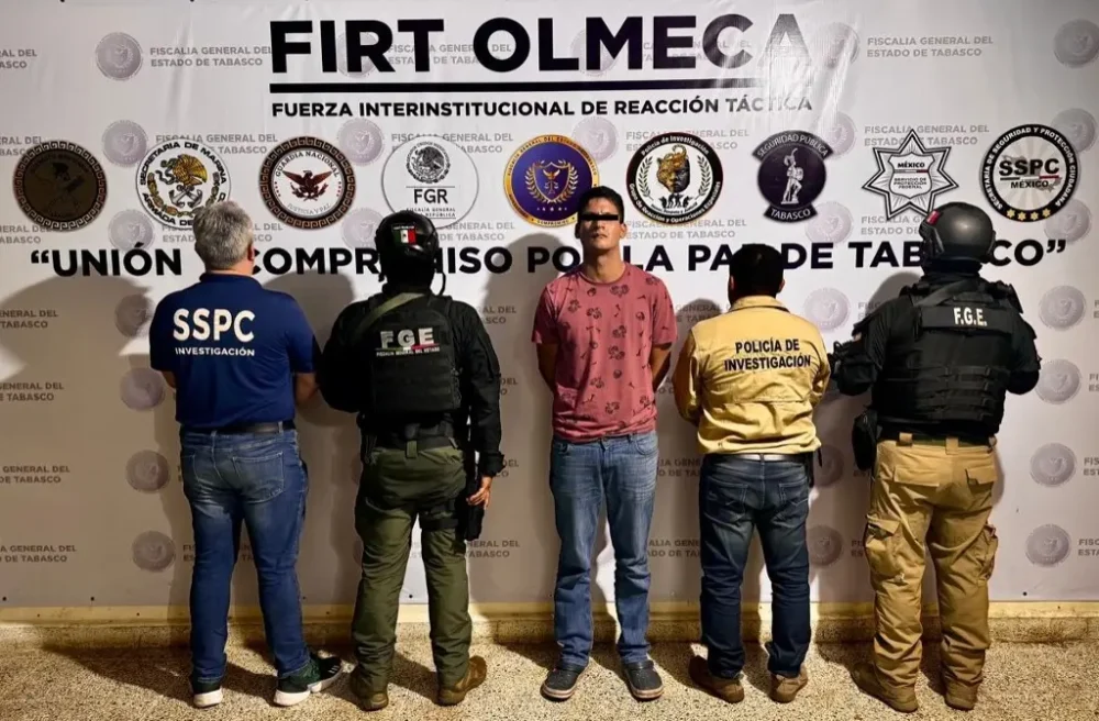 Villahermosa, Tabasco. La Fiscalía General del Estado de Tabasco informa que, en coordinación con las fuerzas de seguridad del estado de Puebla, la noche de este 29 de julio de 2025, fue detenido Ángel Javier «N», identificado como generador de violencia en la entidad.