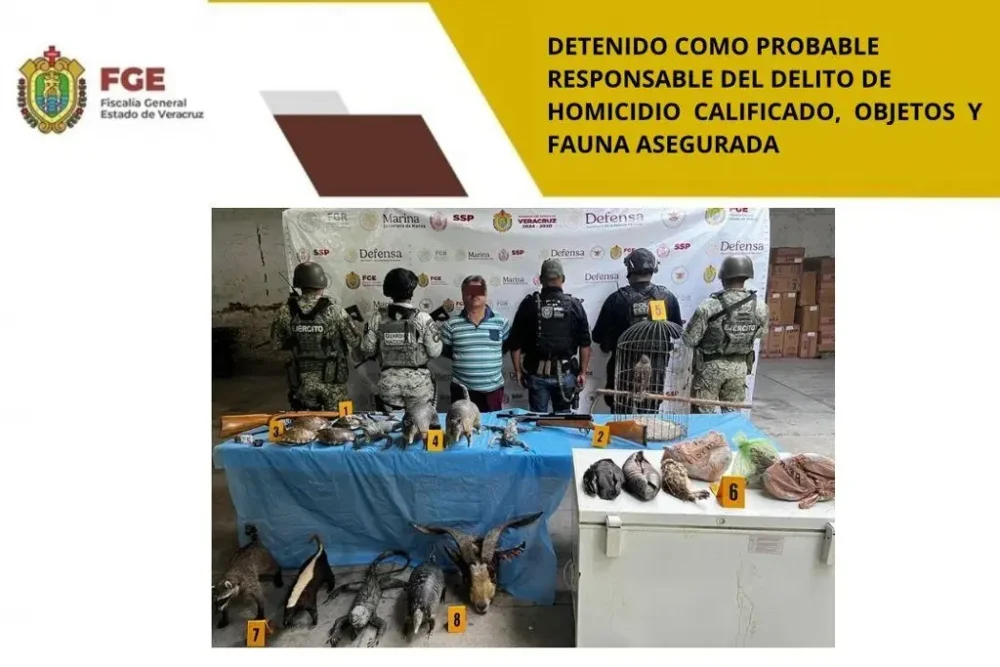 La Fiscalía General del Estado de Veracruz, aseguró animales disecados y especies protegidas durante un cateo en la localidad de Huixcolotla, municipio de Tierra Blanca, además fue detenido un hombre por el delito de homicidio calificado. En un comunicado informaron: La Fiscalía General del Estado informa que fiscales, peritos y policías ministeriales adscritos a la Fiscalía Regional Cosamaloapan, en coordinación con la Secretaría de la Defensa Nacional, la Guardia Nacional y la Secretaría de Seguridad Pública llevaron a cabo un cateo autorizado por un juez, en la localidad de Huixcolotla…