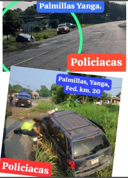 Reportan salida de carretera de camioneta en Palmillas Yanga, Veracruz.
