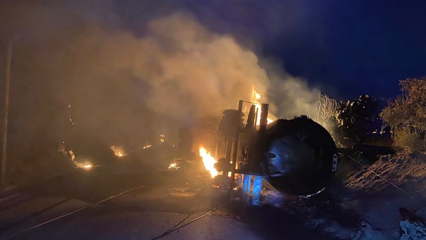 *Se movilizaron bomberos y grupos de auxilio de la región del estado de Puebla ACATZINGO, PUE. (8Col.)02/09/2025.- Cerca de las 05 a.m., se reporto a través delos números de emergencia y 074 un fuerte incendio de una pipa luego de que está terminará volcada sobre los carriles de circulación y se registrara el derrame del producto químico. Este fuerte accidente causó personal de la Guardia Nacional y Capufe ordenarán el cierre de circulación por los carriles en ambos sentidos, debido a que el producto disperso se había incendiado. Por más…