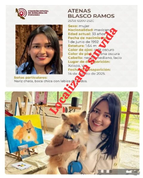 La joven Atenas Blasco Ramos fue reportada desaparecida luego de que su familia perdió comunicación con ella; lamentablemente murió en un fatídico accidente a bordo de un vehículo que cayó a un profundo barrando en un tramo carretero, a la altura del municipio de Tlacolulan, cerca de Xalapa, Veracruz. La tarde de ayer viernes, pobladores de la comunidad de Bañillos del mencionado municipio enclavado en la sierra, a 2400 metros de altura, hallaron un automóvil en el cual fue encontrado el cuerpo de la joven militante del Partido Acción Nacional…