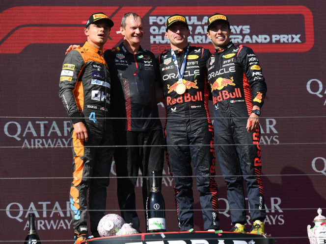 El vigente bicampeón del mundo se impuso sobre el británico Lando Norris (McLaren) y a su compañero de equipo, el tapatío Sergio ‘Checo’ Pérez, que había largado en la novena posición y desde ahí se recuperó gracias a una buena estrategia y a su atrevimiento sobre el circuito de Hungaroring.