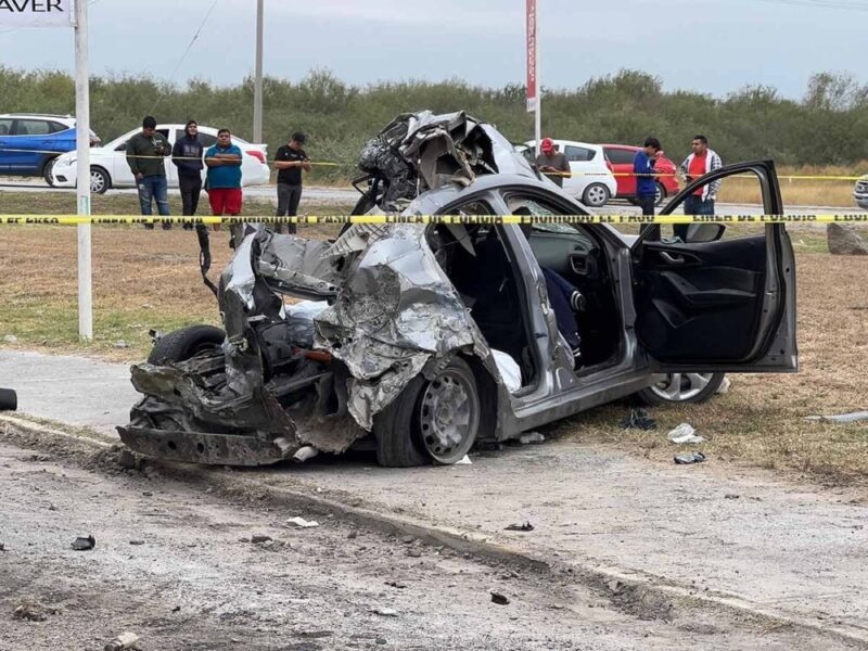 Un vehículo acondicionado como taxi por aplicación participó en un múltiple accidente en Reynosa, Tamaulipas, en el cual fallecieron sus dos pasajeros, y la conductora de la unidad resultó lesionada.