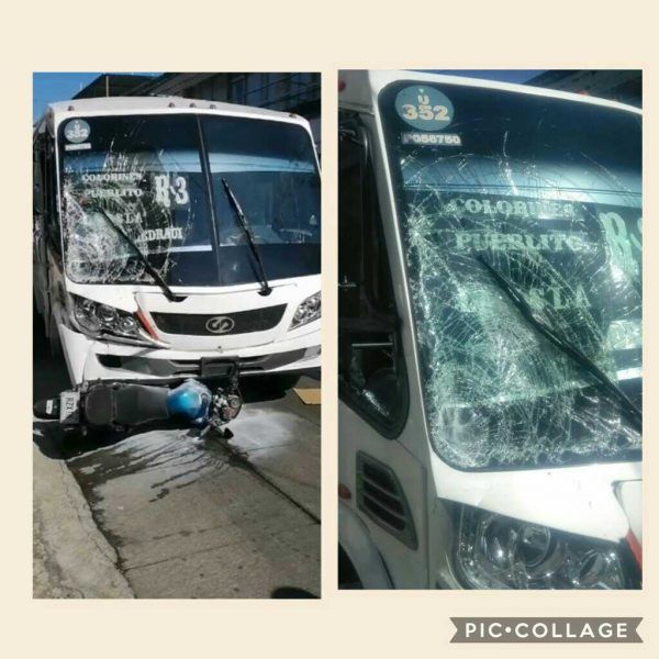 CÓRDOBA, VER .- Un fuerte accidente se registró la mañana de este jueves, luego de chocar unos motociclistas contra un autobús urbano de la ruta 3 que cubren San Román, Fredepo y Colorines.