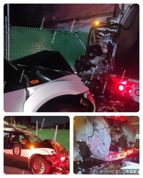 De acuerdo al reporte policial, el accidente por alcance se registró durante la madrugada de este lunes sobre la Avenida 1 entre Calles 8 y 10, en dónde se vio involucrado un camión compactador de Limpia Pública y una patrulla oficial del IPAX, la cuál se incrustó en la parte trasera de un camión al viajar en presunto exceso de velocidad.