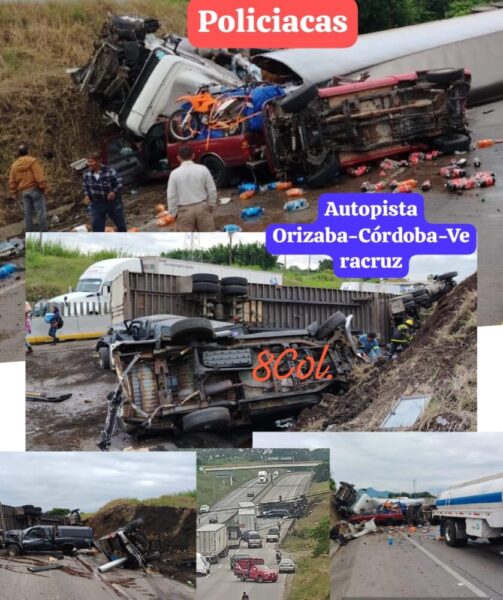 AMATLAN DE LOS REYES, VER. (8Col.)03/10/20224.- Un tráiler con caja seca cargado de refrescos y cuatro camionetas al parecer procedentes de Estados Unidos que circulaban sobre la carretera autopista Puebla-Córdoba-Veracruz, se vieron involucrados en un aparatoso accidente en donde afortunadamente hubo varios personas con lesiones leves.