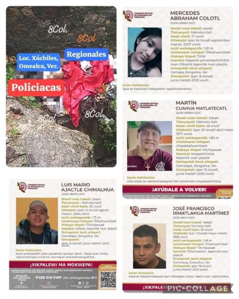 Luis Mario Ajactle Chimalhua de 20 años de edad, Mercedes Abraham Colotl de 17 años, José Francisco Ixmatlahua Martínez, de 30 años de edad, así como Martín Cuahua Matlaltecatl, de 48 años de quién se dijo era el encargado de un centro de rehabilitación en la localidad Comalapa en el municipio de Zongolica Veracruz.