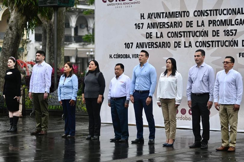 Puede ser una imagen de 9 personas y texto que dice "JUNTOSPORERM 2022 2025 RENACIMIENTO H. AYUNTAMIENTO CONSTITUCIONA 167 ANIVERSARIO DE LA PROMULGA DE LA CONSTITUCIÓN DE 1857 107 ANIVERSARIO DE LA CONSTITUCIÓN H. CÓRDOBA, VER: ordoba."