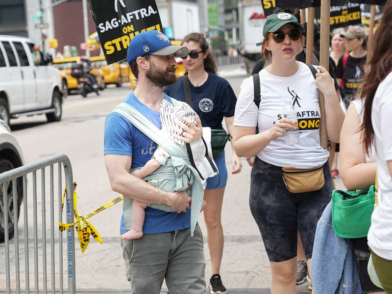 Critican a Daniel Radcliffe por asistir a protesta de actores con su bebé en brazos