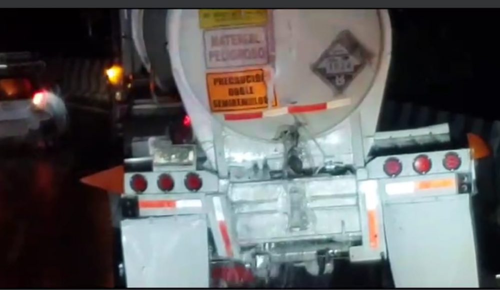 El contenedor se vació por completo, por lo que más de 20 mil litros de hidróxido de sodio o sosa cáustica líquida se derramaron sobre la carpeta de rodamiento, la maleza y la terracería del lugar conocido como El Infiernillo.