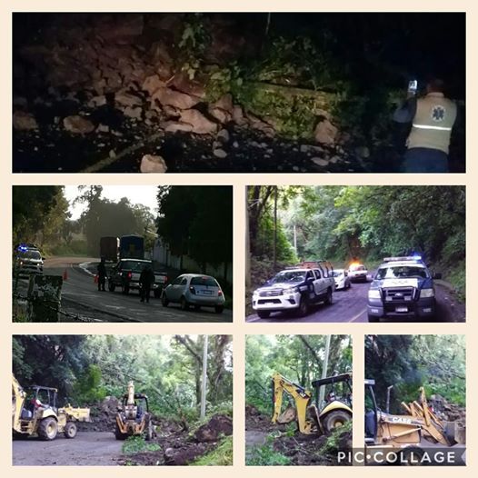 COSCOMATEPEC, VER .- A la primera hora de la madrugada de este domingo personal de la secretaria de Protección Civil alertó de un derrumbe, el cual interrumpió la circulación en la carretera federal Fortín-Huatusco, a la altura del Km. 32