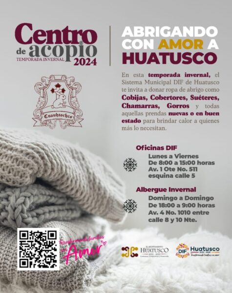 El DIF Municipal, presidido por Norma Ramírez Muñoz, te invita a ser parte de nuestra campaña Abrigando con amor a Huatusco.