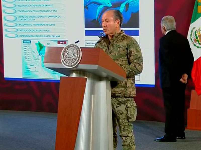 «Dentro del Alto Golfo de California existía un cártel, le llamaban el ‘Cártel de la Totoaba’ vinculada con la cuestión de la vaquita, se desarticuló, se detuvo a siete elementos que están presos, es una acción que se lleva a cabo con varias dependencias, Conapesca, Agricultura, Semarnat, Sader, etc”, detalló el Almirante.