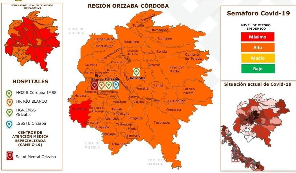 La región de Córdoba-Orizaba en el semáforo epidemiológico de las autoridades estatales se encuentra en color naranja.