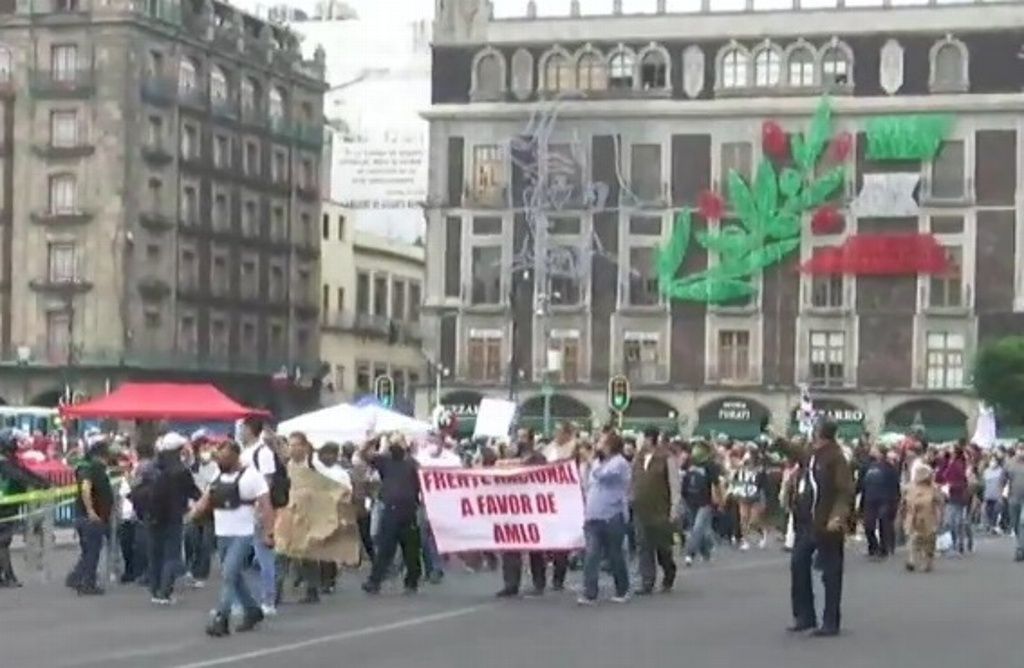 El grupo que apoya a AMLO entró por 5 de Mayo al grito de «Fuera Frenaaa y No estás solo» y acompañado de un maríachi.
