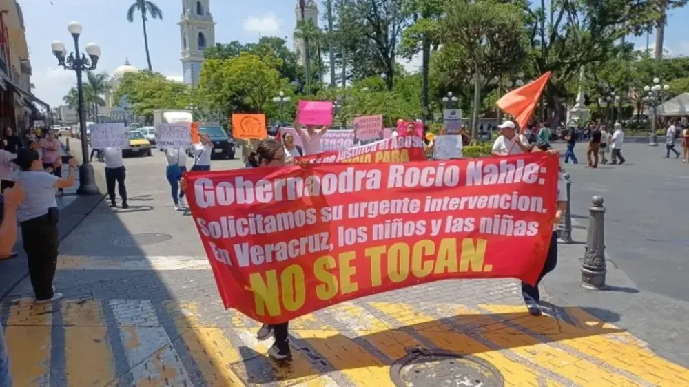 Durante la manifestación, los asistentes portaron pancartas y alzaron la voz para pedir a la Gobernadora del Estado, Rocío Nahle García, y a la Fiscalía General del Estado, Verónica Hernández Giadáns, que garanticen un juicio transparente y se aplique todo el peso de la ley en caso de que se compruebe la responsabilidad del presunto pederasta.