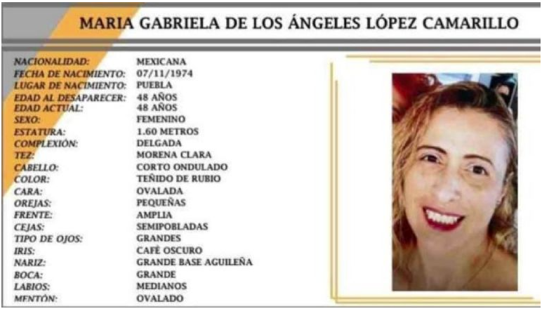 Solicitamos su colaboración para la pronta localización de María Gabriela de los Ángeles López Camarillo, vista por última vez en la colonia Los Héroes 2a Sección, Puebla, Puebla.