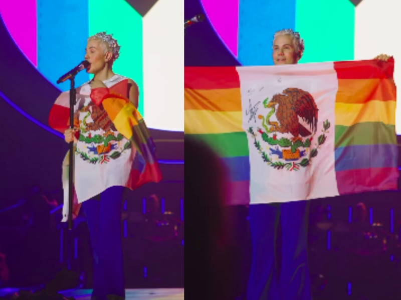 Chávez presumió la bandera de México, pero la cambió para que en lugar de traer los colores verde y rojo se vieran los de la bandera LGBTQ+.