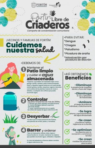 El H. Ayuntamiento de Fortín exhorta a toda la ciudadanía, a la campaña de concientización “Patio Limpio, Fortín Libre de Criaderos” la cual tiene como objetivo evitar enfermedades como dengue, chagas, paludismo, picaduras de arañas, intoxicación por picadura de alacrán entre otras. ♻️
