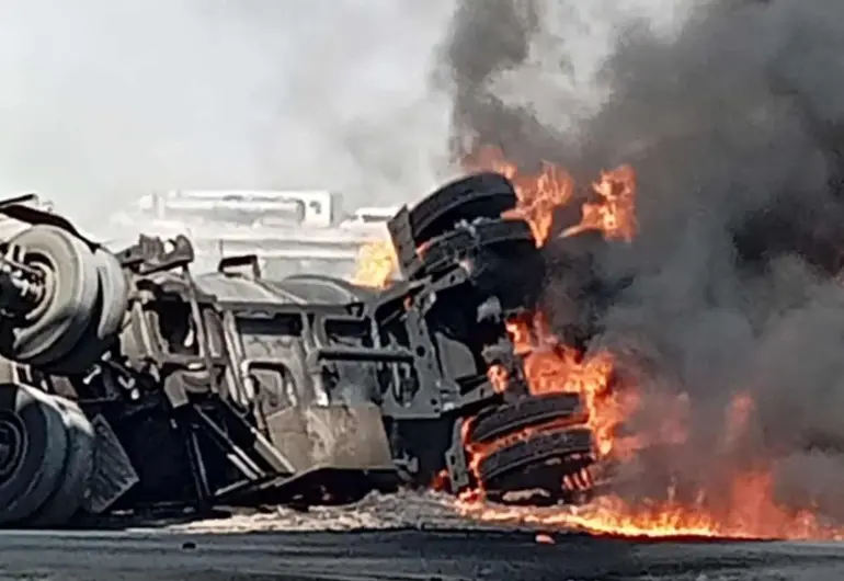 El impacto ocurrió cuando la unidad de transporte intentó ganarle el paso al tren, lo que derivó en una colisión inmediata. La fuerza del choque provocó una inmensa columna de fuego y humo negro, visible desde distintos puntos de la región de Tula.