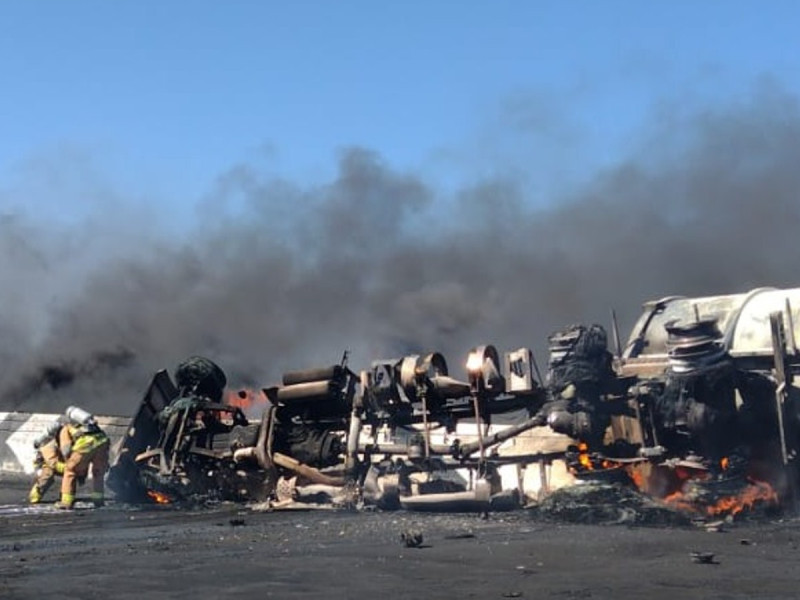 De acuerdo con las autoridades, un tractocamión de remolque de cisterna fue el que se accidentó. La unidad cargada con gasolina volcó en el sitio y se incendió, lo que provocó una gran columna de humo negro que era visible a varios kilómetros.