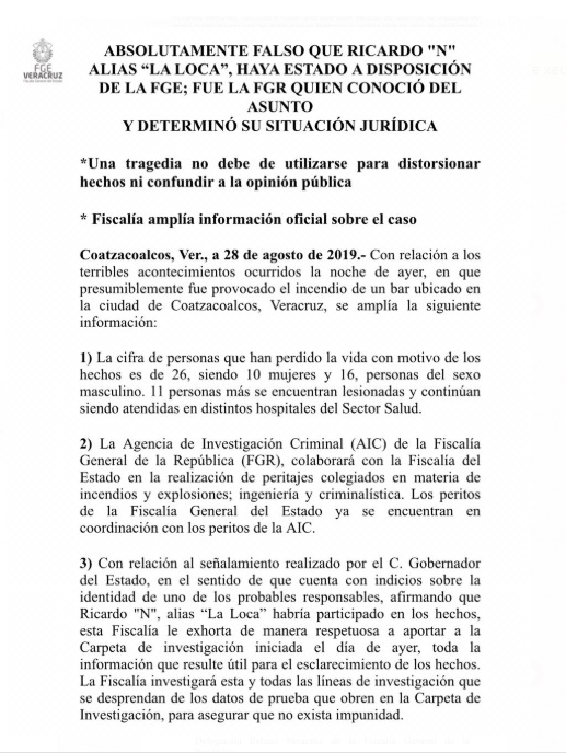 La Fiscalía General del estado confirma que aumentó a 26 el número de fallecidos por el ataque armado en un bar en Coatzacoalcos, Veracruz.
