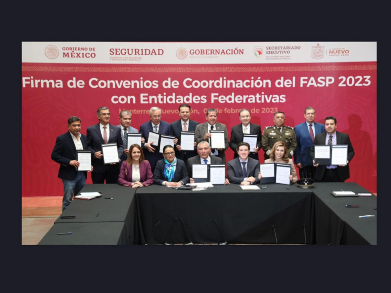 Rodríguez, responsable de las políticas de seguridad pública del Gobierno de México, participó, en la ciudad de Monterrey, Nuevo León, en la «Firma del Convenio de Coordinación del FASP con Entidades Federativas del Norte del País 2023».