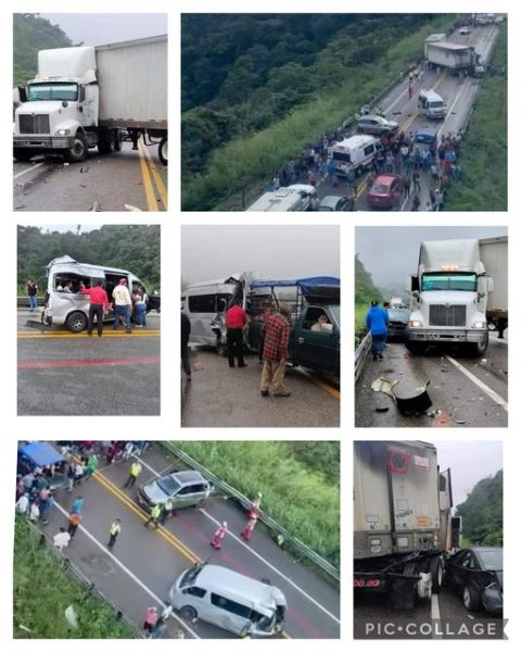 Varios lesionados y extraoficialmente se dice cerca de 5 personas fallecidas, fue lo que dejo este accidente multiple, por lo que hasta este momento continúa el cierre a la circulación en ambos sentidos por atención de accidente.